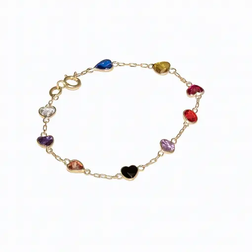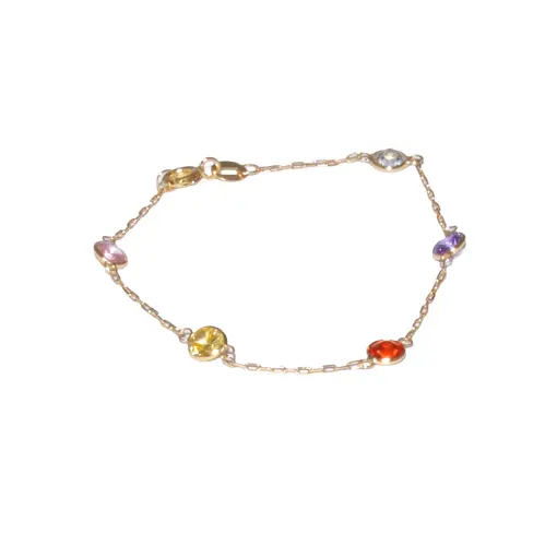 Pulseira Infantil Zircônia Colorida em Ouro 18K